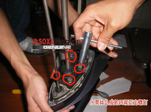 接下來,松開水泵體總成上的4顆固定螺絲。